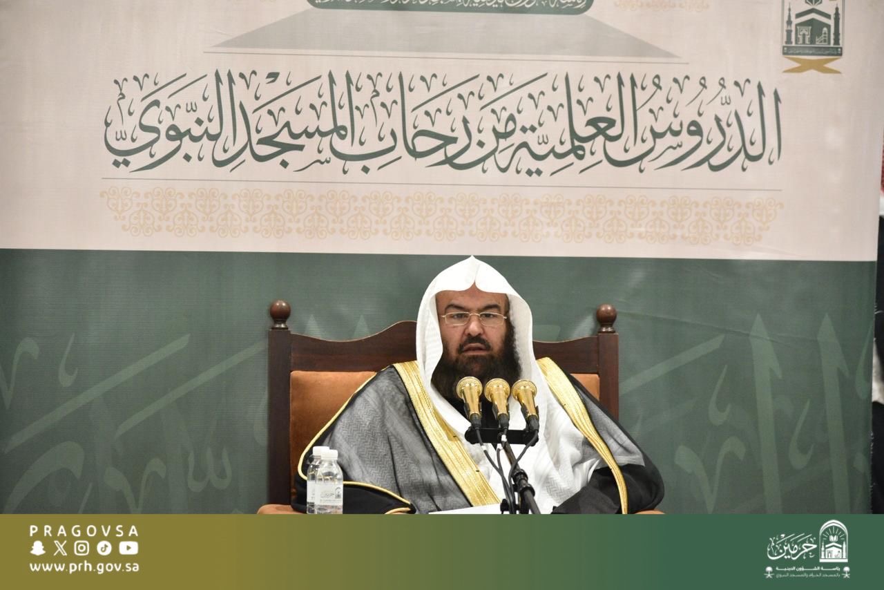 ألقى معالي رئيس الشؤون الدينية بالمسجد الحرام والمسجد النبوي، الشيخ الأستاذ الدكتور عبدالرحمن بن عبدالعزيز السديس، درسًا علميًا في رحاب المسجد النبوي الشريف، تناول فيه شرح كتاب التوحيد وكتاب زاد المعاد، وذلك بحضور جمعٍ من طلاب العلم والزائرين.